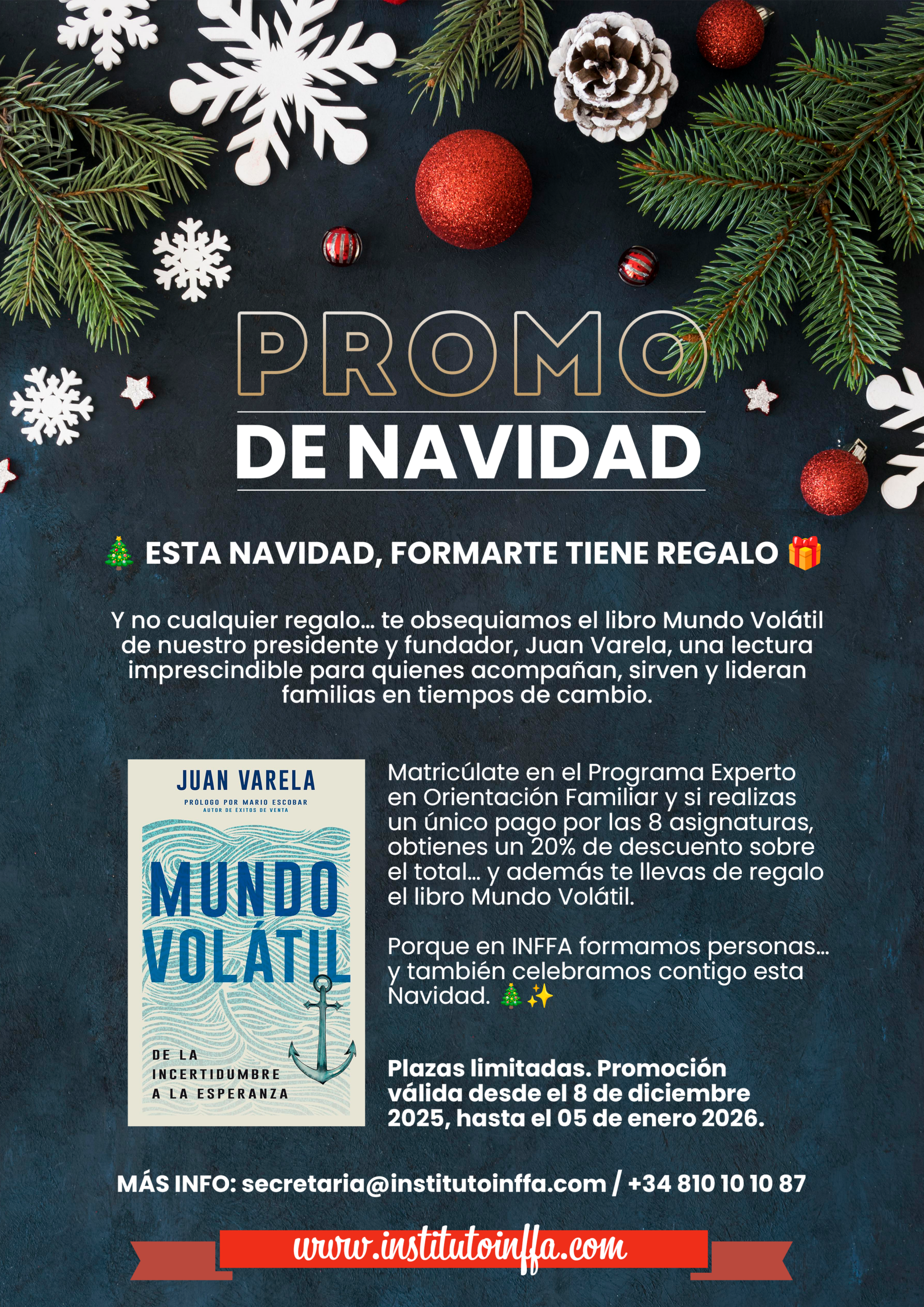 El Instituto de Formación Familiar (INFFA) es una asociación cristiana sin fines de lucro, comprometida con la capacitación y el desarrollo de líderes y profesionales en diversas áreas. Fundado en 2005 por los pastores Juan Varela y Mª del Mar Molina, INFFA nace con el propósito de dar respuesta a las necesidades de nuestra generación, mejorando la calidad de vida de matrimonios y familias, siempre desde una perspectiva bíblica.